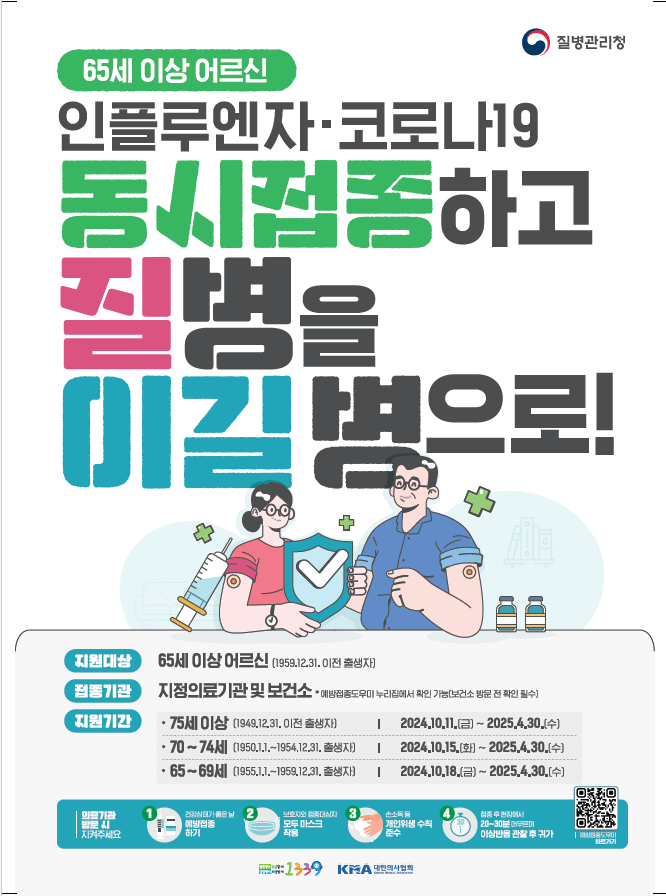 두 가지 백신을 한 번에 접종하면 면역력을 동시에 강화할 수 있어 효율적인 예방이 가능하다고 하니, 접종을 미루지 말고 꼭 완료하길 당부드립니다.