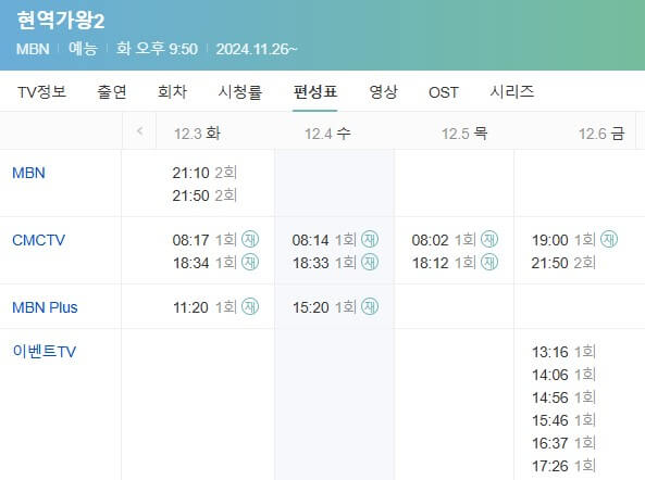 재방송 시간은 유동적이니 MBN 편성표를 확인하는 것이 중요합니다.